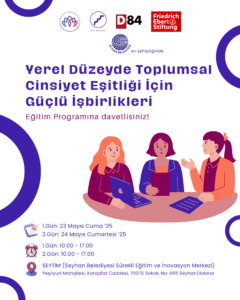 Küresel Eşitlik ve Kapsayıcılık Ağı Derneği (KAPI) ve 1984 Derneği (D84) ortaklığında, Friedrich Ebert Stiftung Türkiye Temsilciliği (FES) desteği ve Seyhan Belediyesi ev sahipliğinde, 23-24 Mayıs 2025 tarihlerinde Adana’da düzenlenen “Yerel Düzeyde Toplumsal Cinsiyet Eşitliği İçin Güçlü İşbirlikleri Programı” başarıyla tamamlandı.